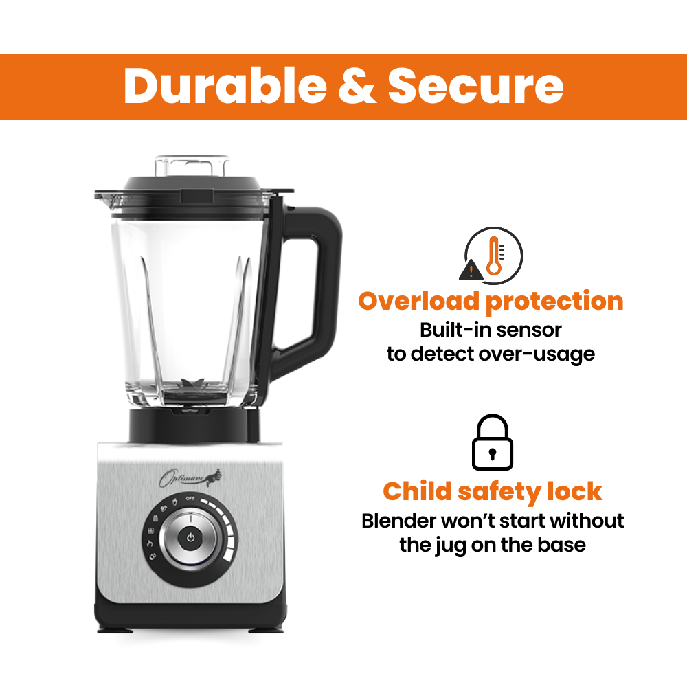 Protection contre la surchargeConçu pour durer, l'Optimum 9400 Essential intègre une protection contre la surcharge de pointe avec un capteur intégré qui détecte une utilisation excessive et la chaleur. Cette fonction intelligente protège le moteur, garantissant une expérience de mixage sans souci pendant des années. | |